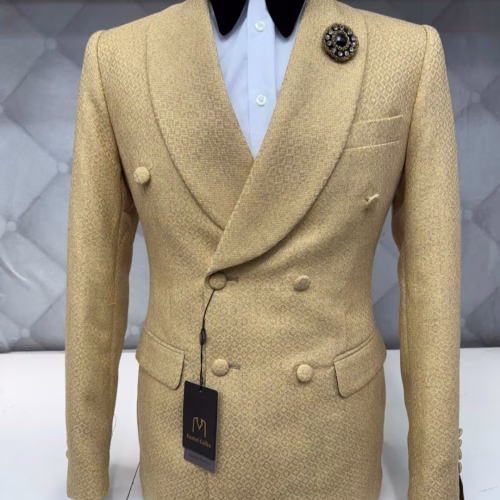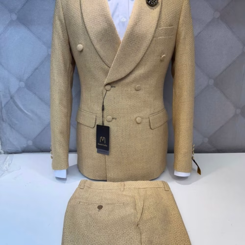 2 Piece Double Breasted Suit shawl lapel (Beige): Jacket and Pants Set (Ready to wear)