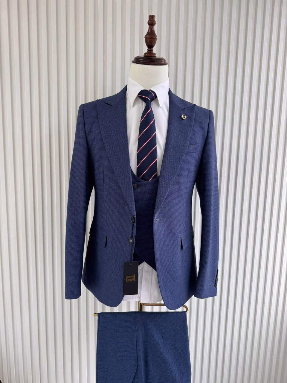 Navy blue peaked lapel 3 piece suitNavy blue peaked lapel 3 piece suit